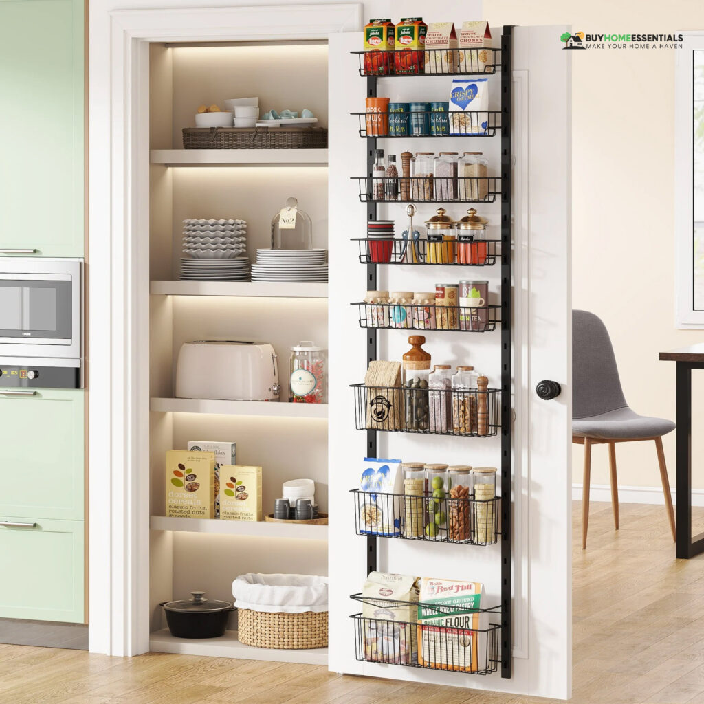 Over-the-Door Organizers: You shouldn’t overlook the back of the pantry door! Over-the-door organizers can hold items like spices, small snacks, or even cleaning supplies. You can make use of this unused space as a valuable storage facility.